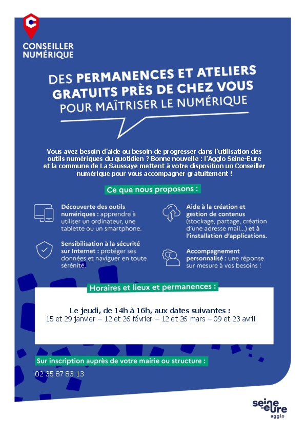 Bonne nouvelle: l'Agglo Seine-Eure et notre commune mettent à votre disposition un Conseiller numérique pour vous accompagner gratuitement.
