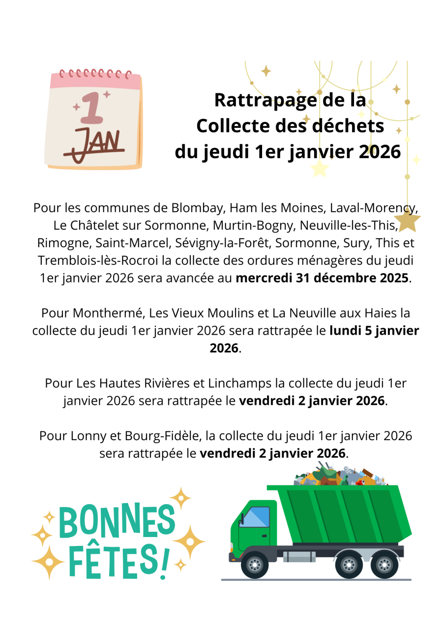 Attention, en raison des fêtes de fin d'année, les collectes sont avancées
