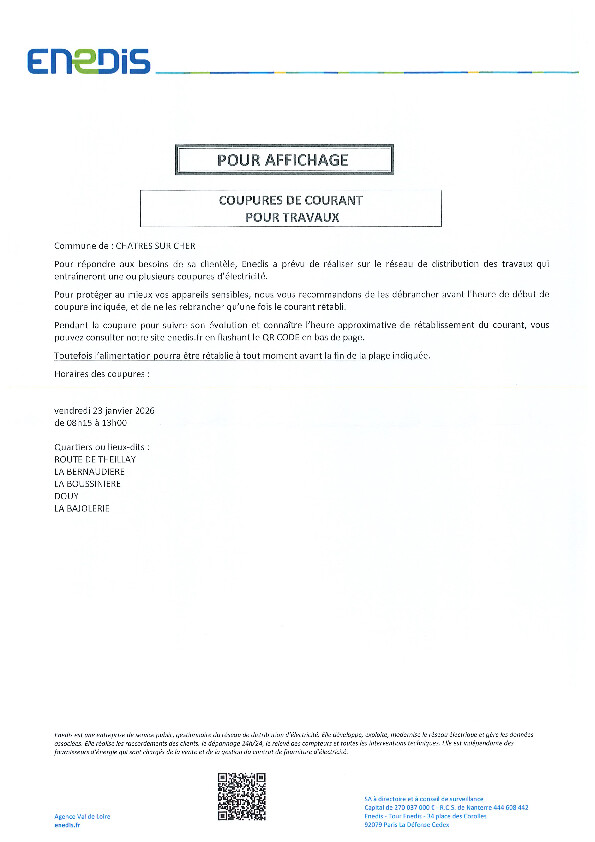 COUPURES DE COURANT POUR TRAVAUX