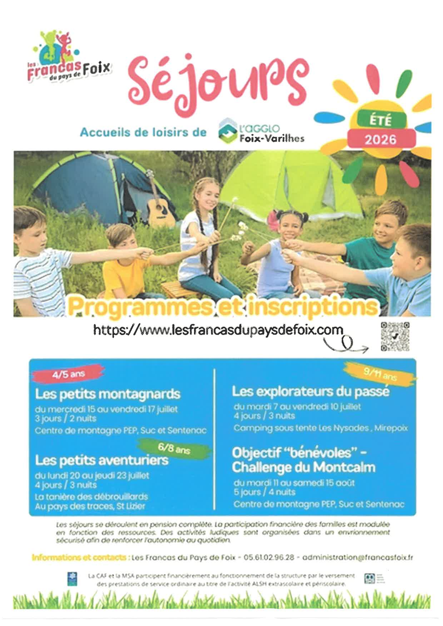 Descriptifs des séjours en ligne sur https://www.lesfrancasdupaysdefoix.com/les-vacances-alsh