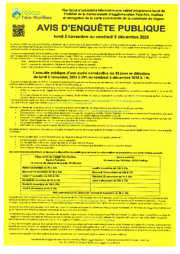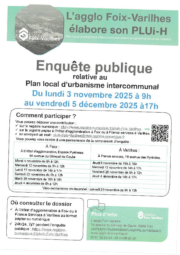 Enquête Publique de l'Agglo Foix-Varilhes relative au Plan Local D'Urbanisme Intercommunal (PLU I) du 3 novembre au 5 décembre 2025