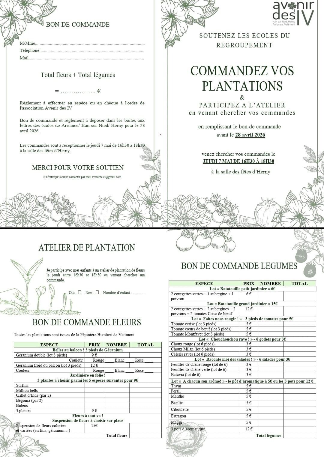 L’association des parents d’élèves du RPI, vous propose sa vente de fleurs et légumes ainsi qu’un atelier plantation de graine le jeudi 7 mai.