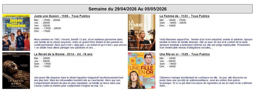 Programme ciné du 29 avril au 5 mai 2026 🎥