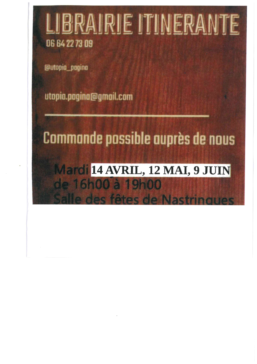 LIBRAIRIE ITINERANTE 14 AVRIL
