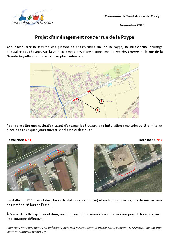 Une expérimentation d'aménagement routier va être menée dans les jours qui viennent rue de la Poype, conformément aux documents ci-dessous.