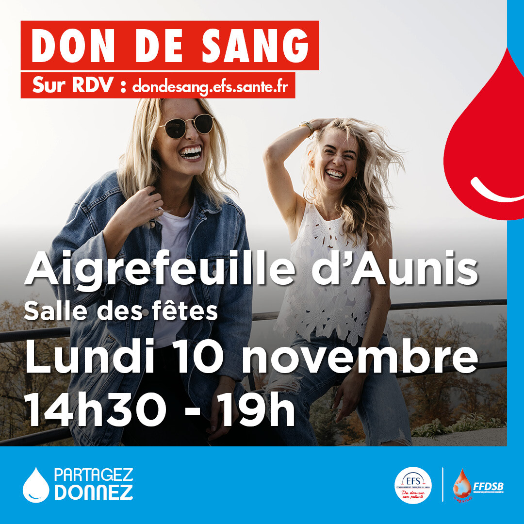 Lundi 10 novembre 2025 de 14h30 à 19h, à la salle des fêtes d'Aigrefeuille d'Aunis - Avenue des Marronniers