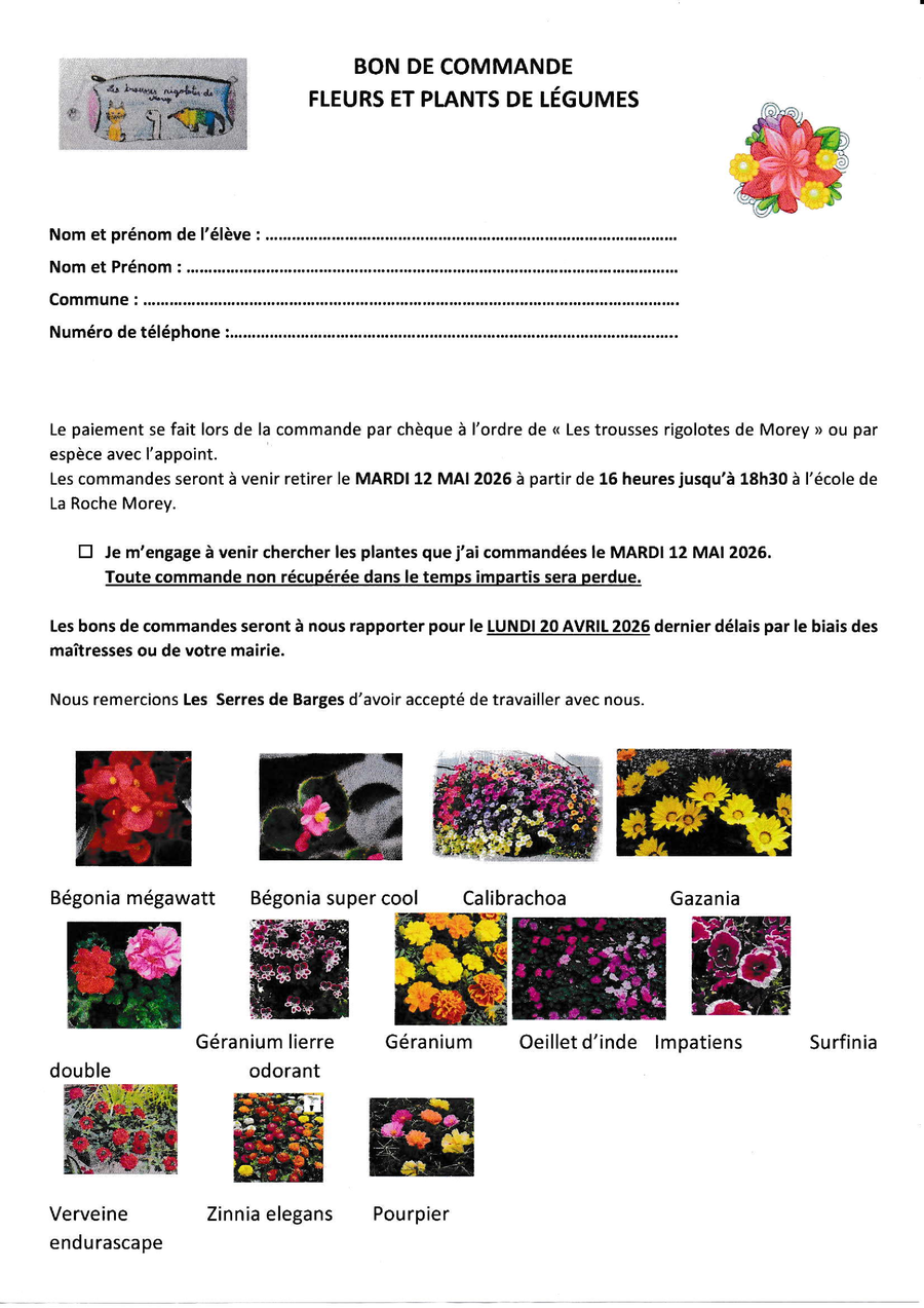 Les bons de commande peuvent être déposés dans la boîte aux lettres de la mairie jusqu'au 20/04/2026 !