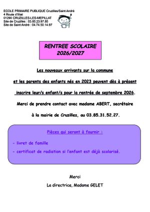 Les inscriptions pour l’année scolaire 2026/2027, concernant les nouveaux élèves, sont ouvertes dès à présent.