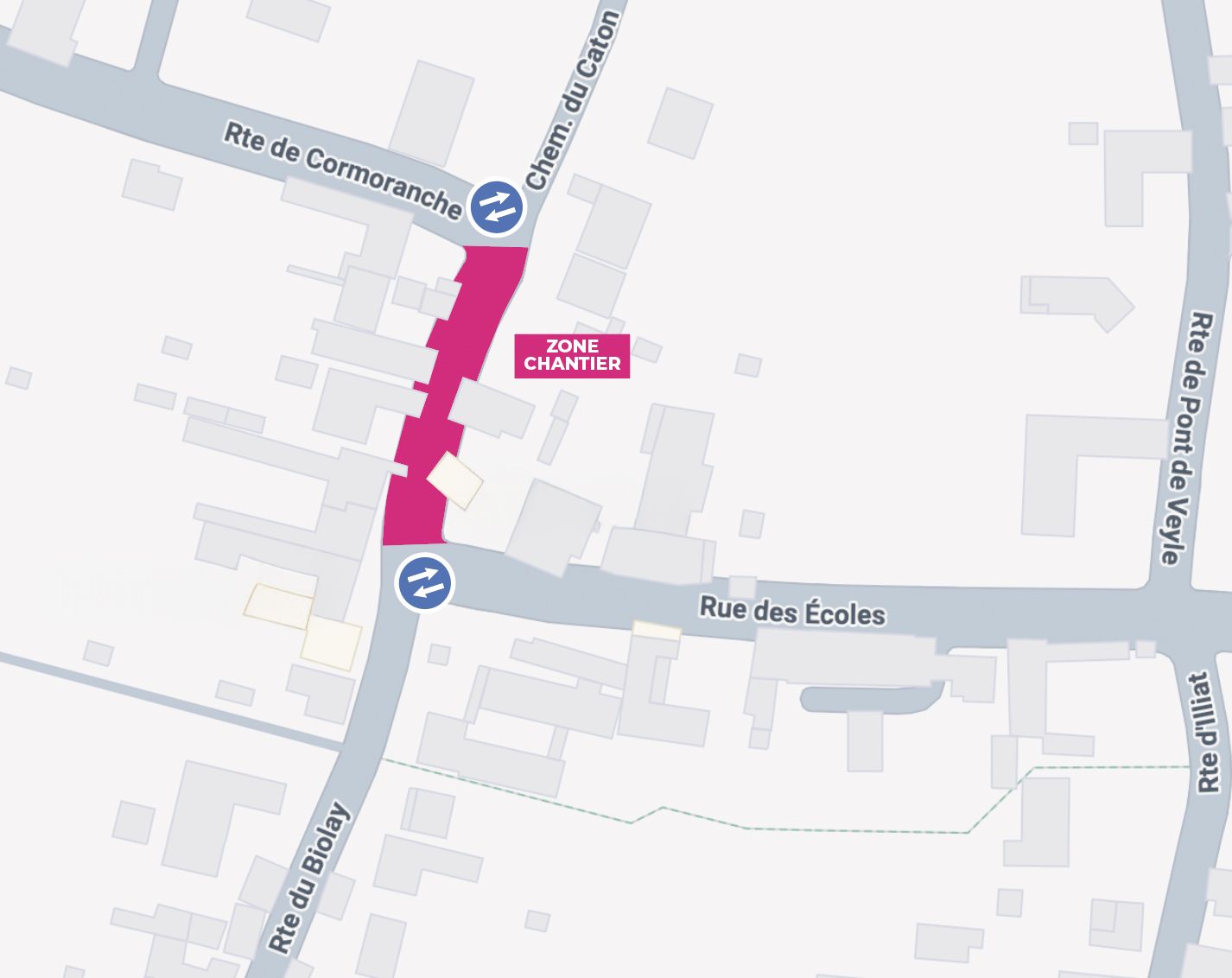 En raison des travaux en cours route du Biolay, la circulation sera interdite dans le passage reliant la rue des écoles au chemin du Caton, à partir du lundi 16 mars et pour une durée d’environ deux semaines.