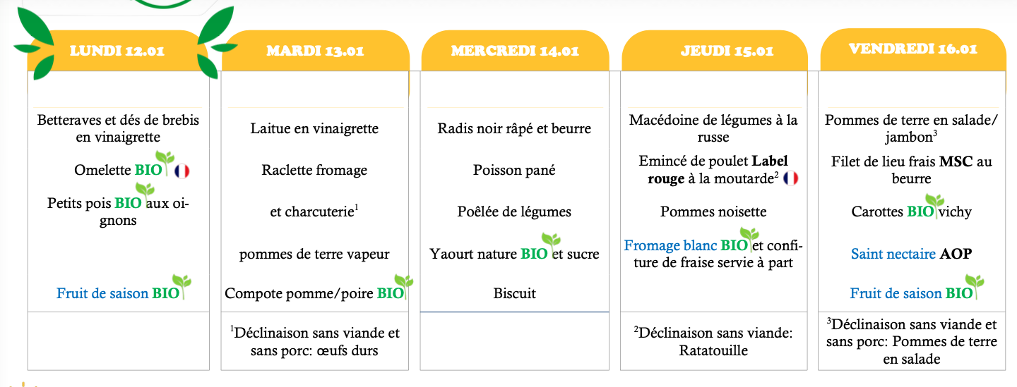 MENU DE LA SEMAINE