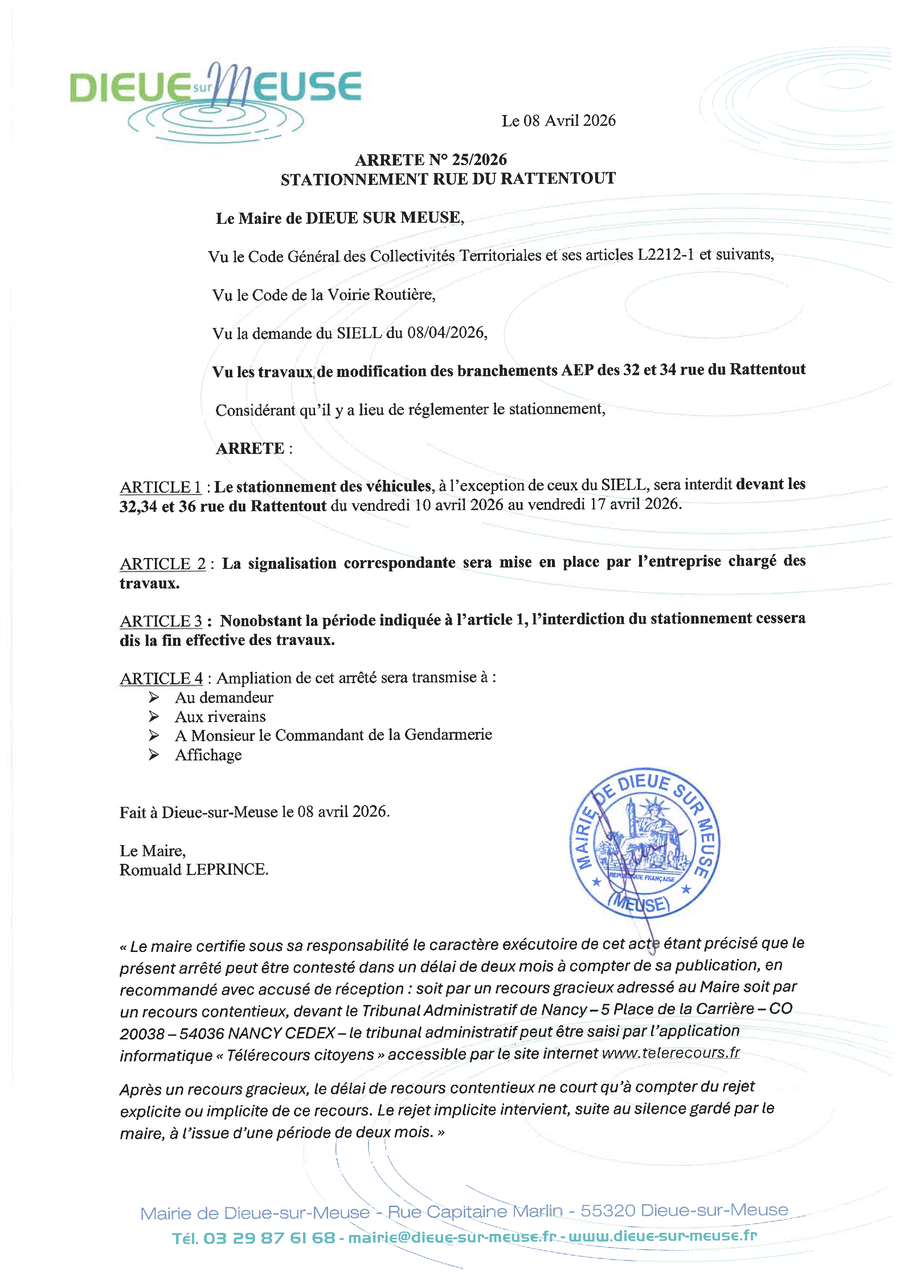 ARRETE STATIONNEMENT DU RATTENTOUT