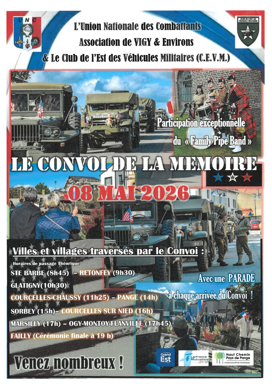 L'UNC de Vigy & Environs et le Club de l'Est du Véhicule Militaire (C.E.V.M.) font escale dans notre commune lors de leur grand périple mémoriel à travers la communauté de communes.