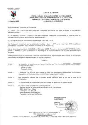 Interdiction de circulation et de stationnement route du Phare et rue de la Judée pour la réalisation du reprofilage et du bicouche du 23/02/2026 au 08/03/2026