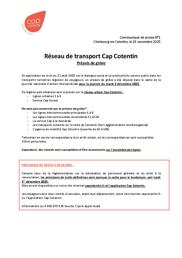 sur le réseau urbain Cap Cotentin :