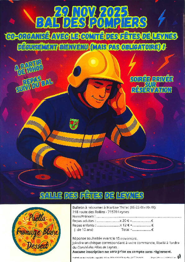 Le CPI de Leynes, en collaboration avec le Comité des Fêtes, vous donne rendez-vous pour une soirée inoubliable !