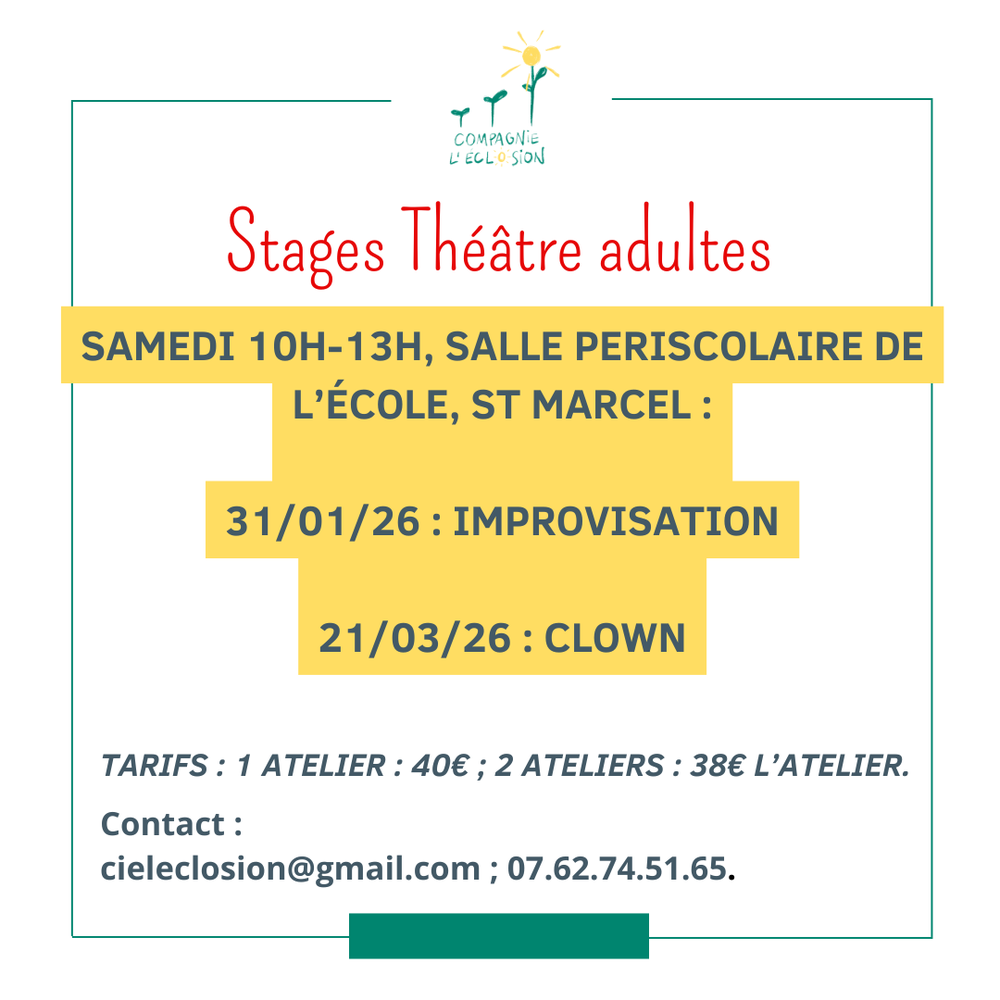 🎭️Stages de Théâtre adultes - St Marcel