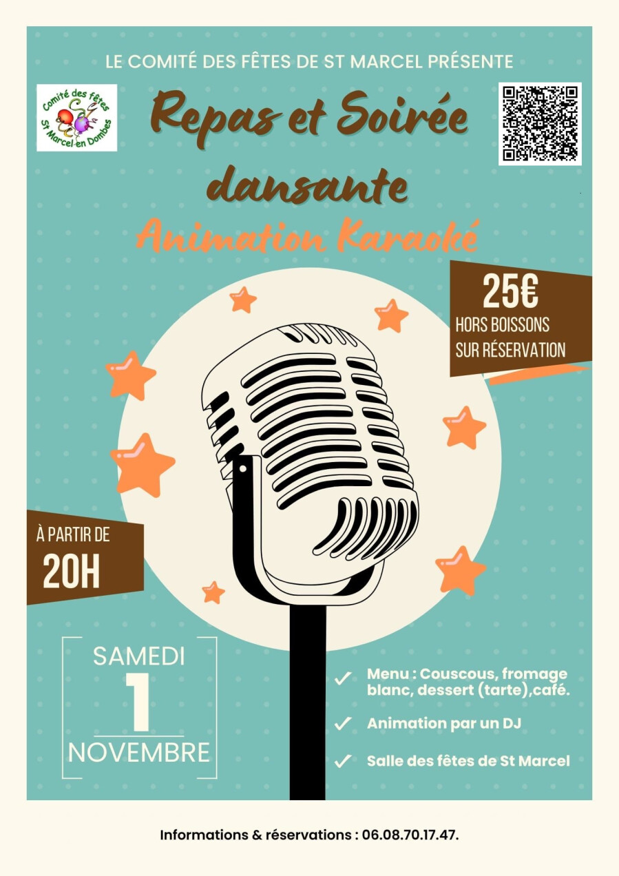 Le Comité Des Fêtes de Saint Marcel vous propose un repas et soirée dansante avec animation Karaoké le :