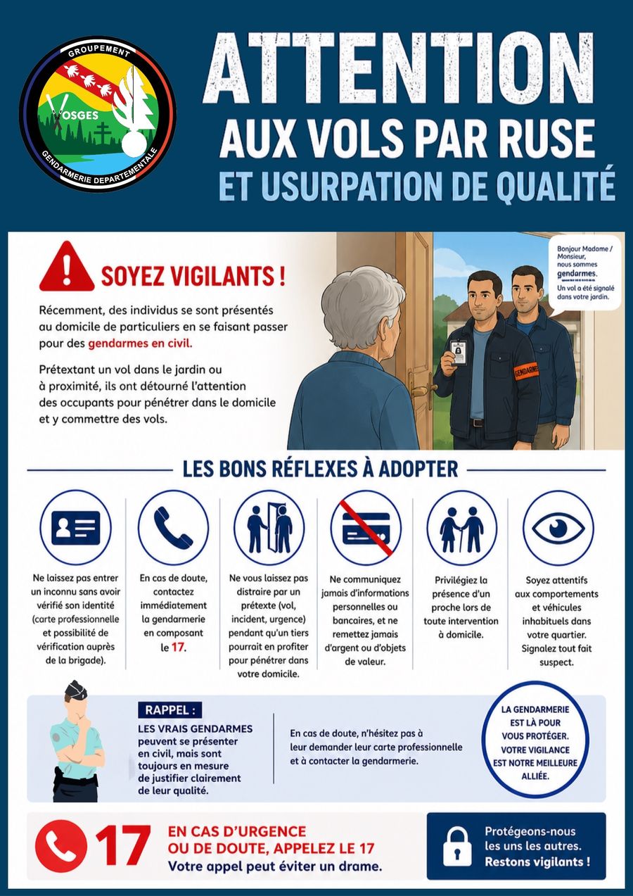 🚨 La gendarmerie vous appelle à la vigilance face aux faux démarcheurs (agents publics, professionnels).