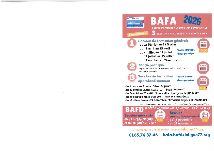 LALIGUE 77 vous propose des sessions de formations au BAFA pour l'année 2026.
