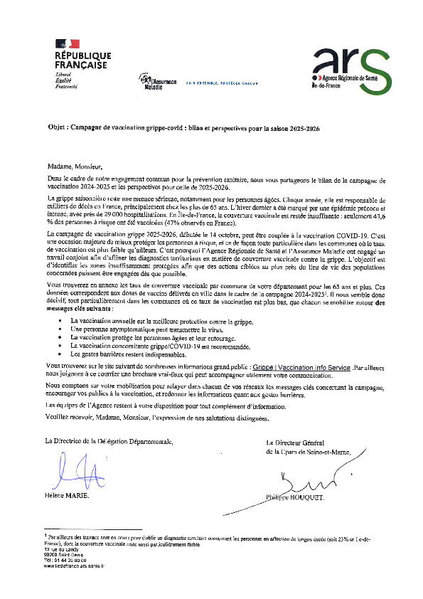 La campagne de vaccination contre la grippe saisonnière 2025 a débuté le 14 octobre 2025, en parallèle de celle contre le Covid-19.
