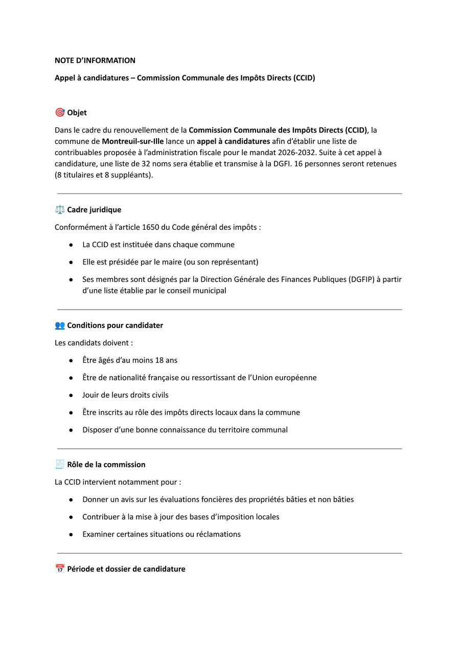 Les personnes intéressées sont invitées à présenter leur candidature à la mairie