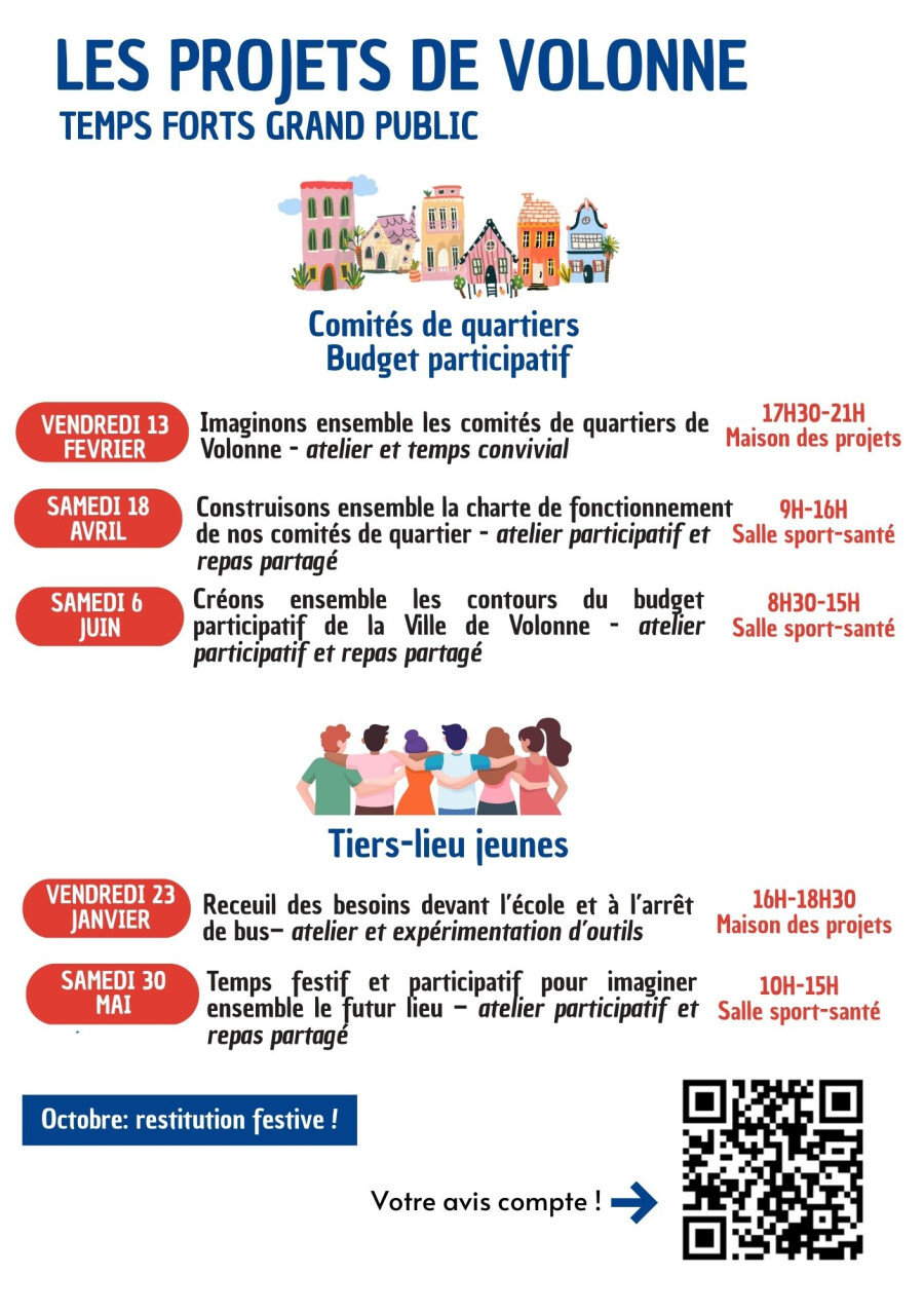 Accompagnée par l’agence Blossom Territoires et le collectif Passages, la démarche se décline en plusieurs étapes et rencontres jusqu'en octobre 2026 : (voir images jointes)