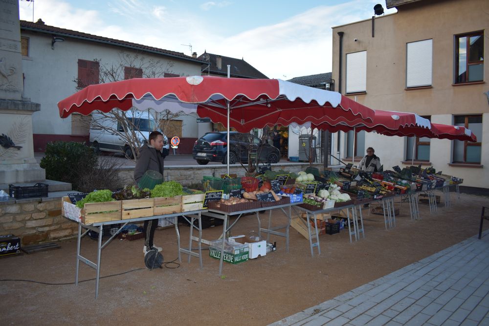 Vous trouverez les fruits et légumes, les œufs, le boucher et le fromager.