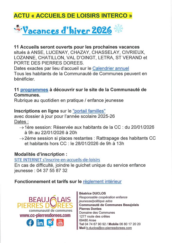 ACTU « ACCUEILS DE LOISIRS INTERCO »