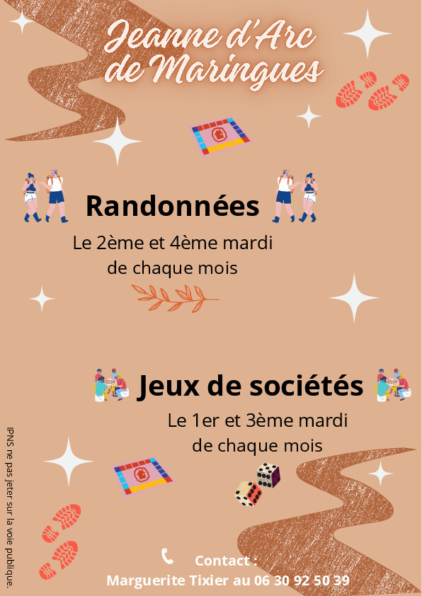 Voici diverses informations sur les activités proposées par l'association la Jeanne d'Arc de Maringues.