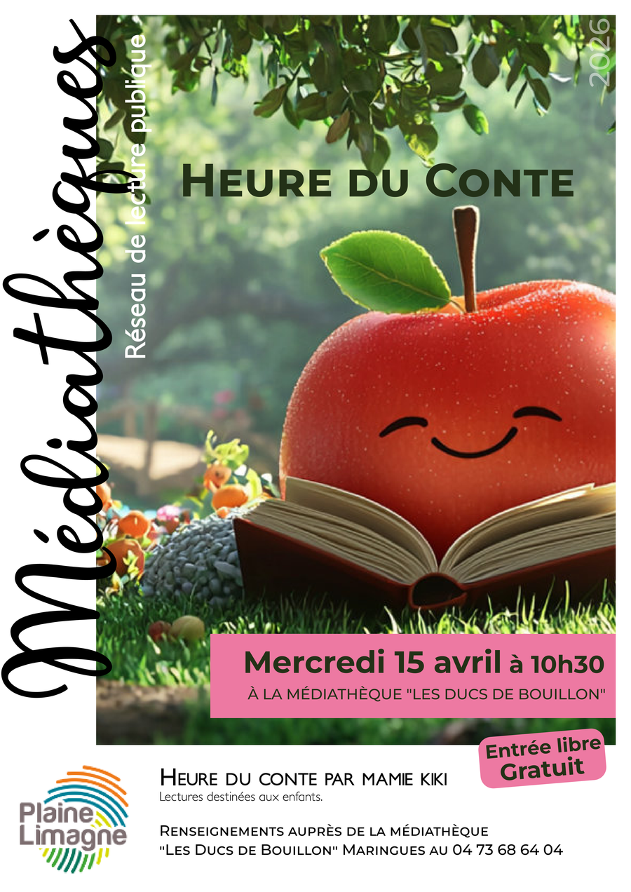 Retrouvez l'Heure du Conte à la Médiathèque "Les Ducs de Bouillon" de Maringues, le mercredi 15 avril, à 10h30.