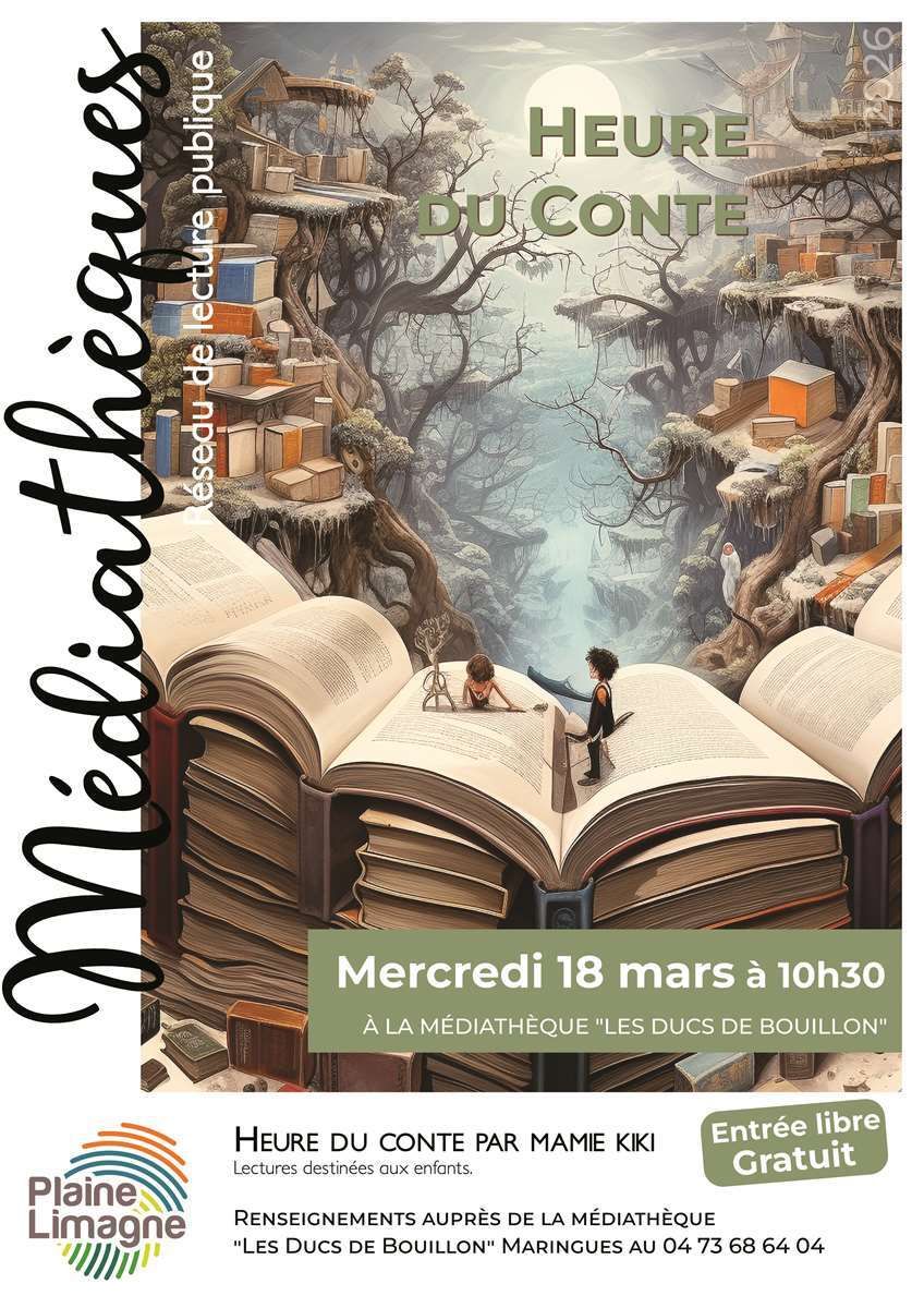 Retrouvez l'Heure du Conte à la Médiathèque "Les Ducs de Bouillon" de Maringues, le mercredi 18 mars, à 10h30.