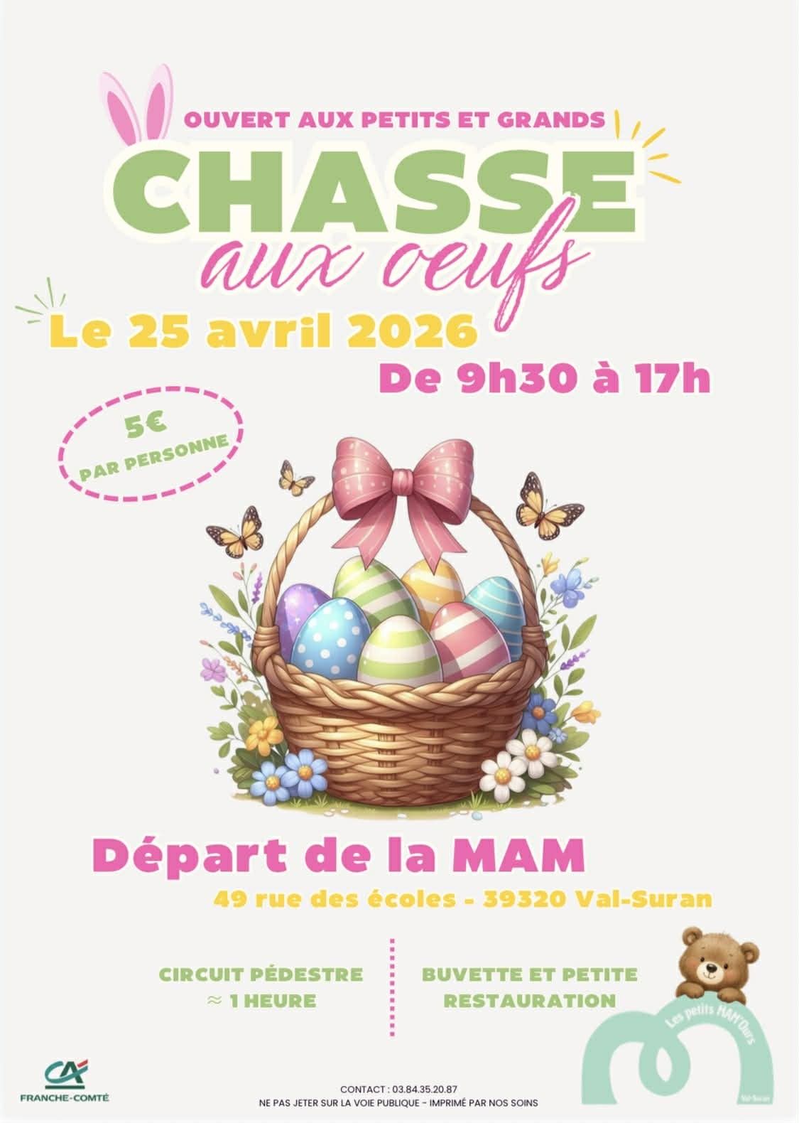 "La MAM vous attend le samedi 25 avril 2026 de 9h30 à 17h pour un rallye chasse à l'œuf,