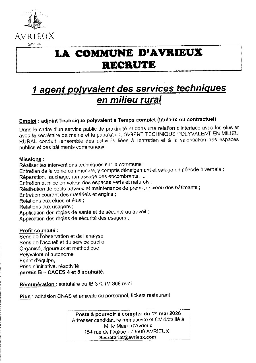 OFFRE D'EMPLOI AGENT TECHNIQUE