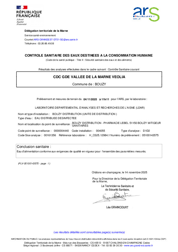 Contrôle sanitaire des Eaux destinées à la Consommation Humaine