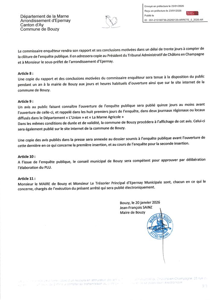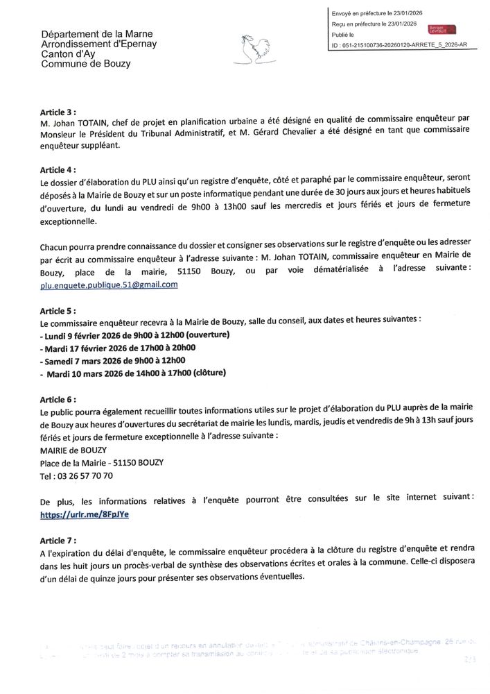 OUVERTURE DE L'ENQUÊTE PUBLIQUE