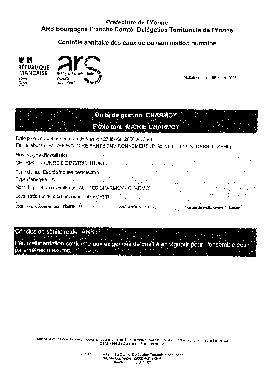 Analyse d'eau ARS