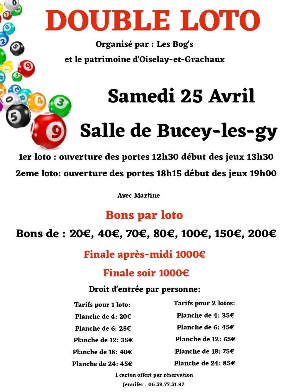 🎟️ Tarifs (1 loto) : 20€ à 45€