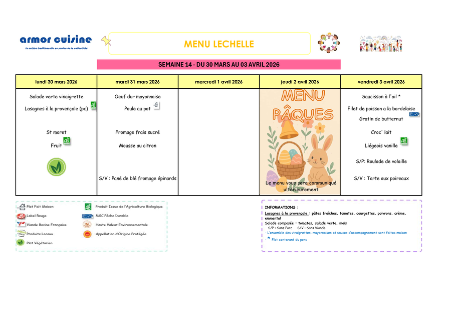 🍴 MENU CANTINE SCOLAIRE