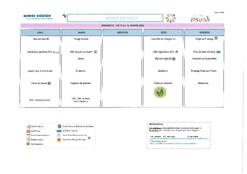 🍴 MENU CANTINE SCOLAIRE