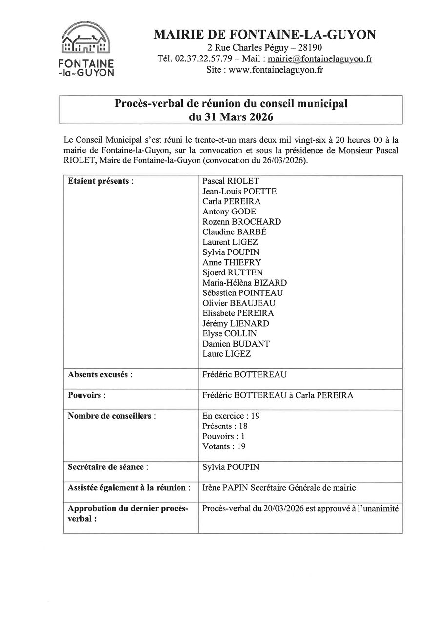 Ci-dessous le procès-verbal de la réunion du conseil municipal du