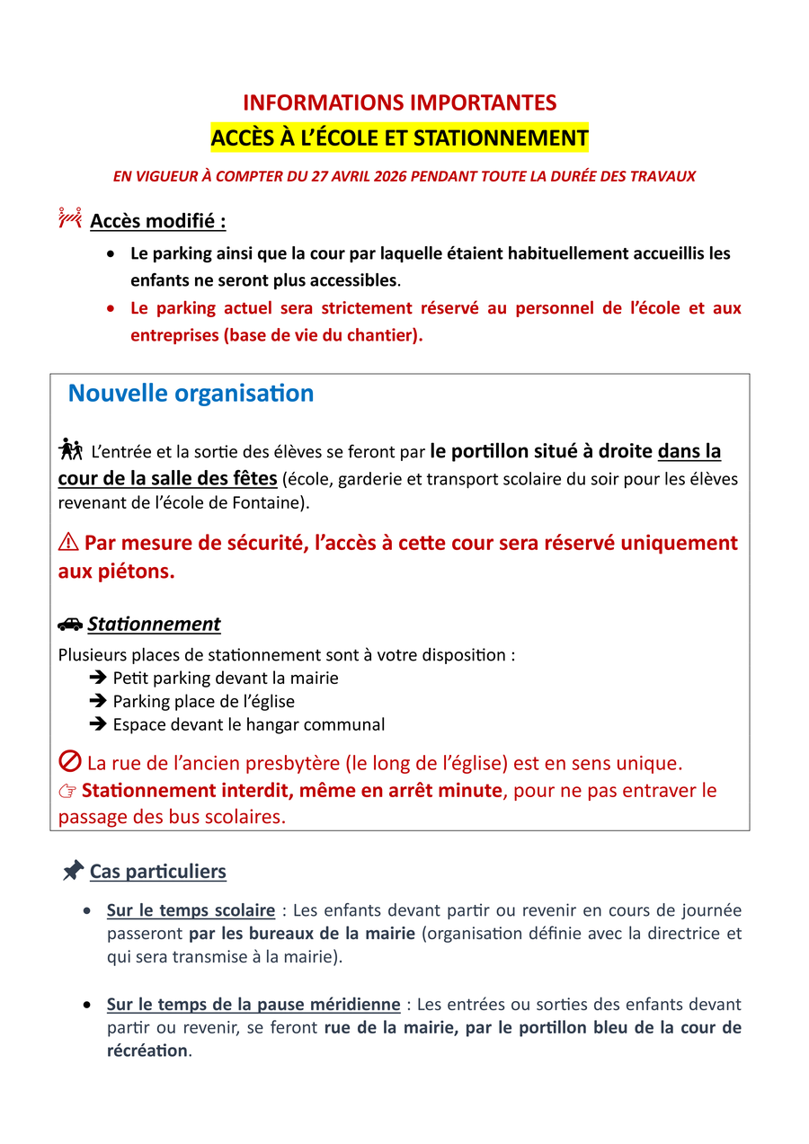 Vous trouverez ci-dessous toutes les informations nécessaires pour accéder à l’école pendant cette période, ainsi qu’un plan détaillé pour faciliter la circulation et le stationnement.