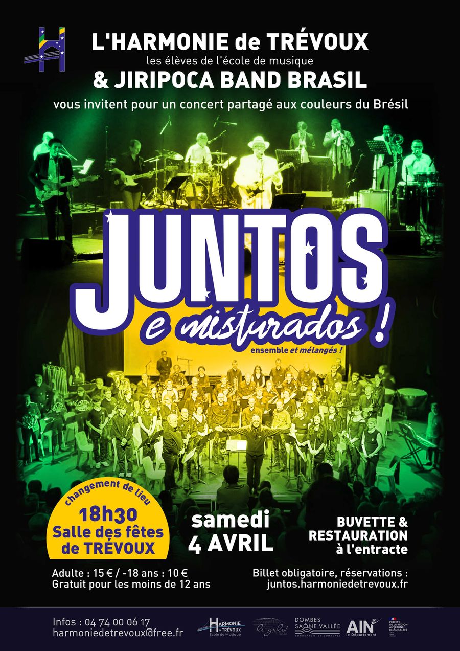 Ambiance rythmes brésiliens et partage d’influences musicales variées pour ce concert festif, réunissant les musiciens du Jiripoca Band, de l’Harmonie de Trévoux et les élèves de son école de musique