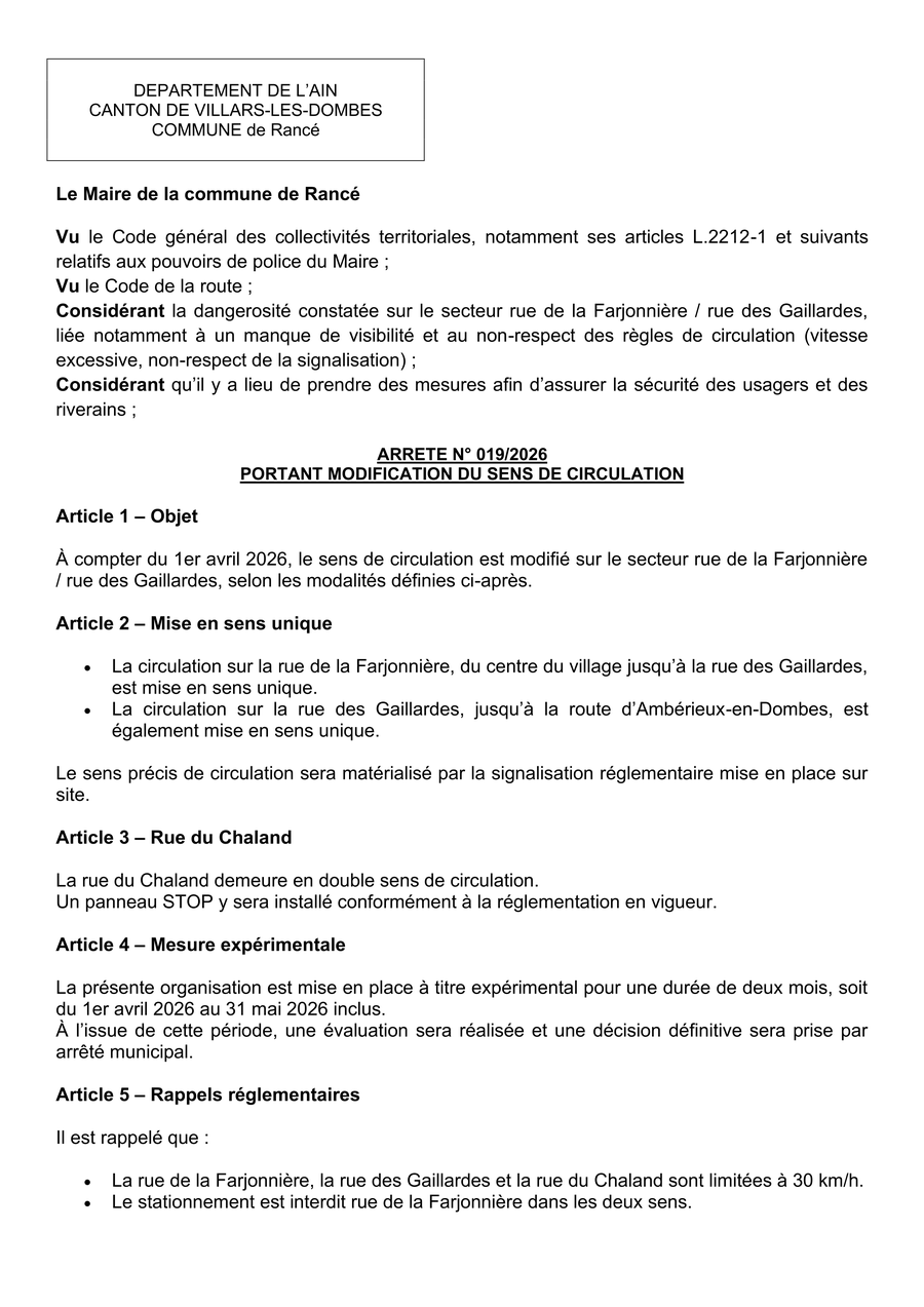 d'une circulation en sens unique