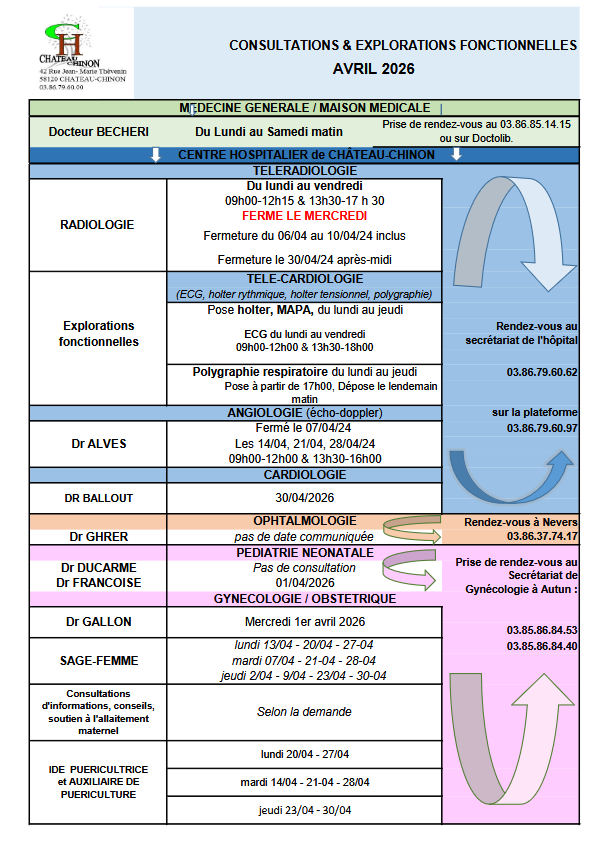 Centre hospitalier - Les consultations en avril