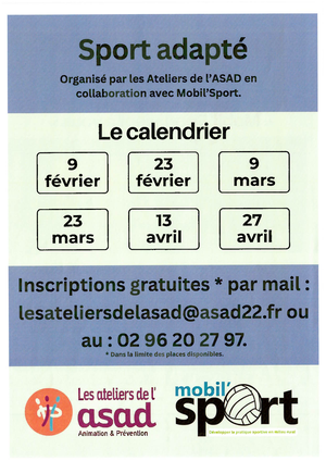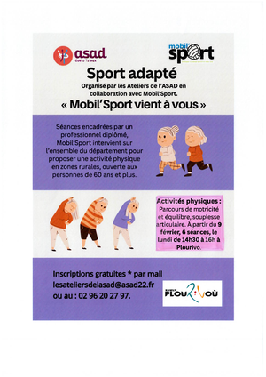 En partenariat avec l'ASAD Goëlo Trieux Goëlo, la commune propose 6 séances de sport adapté au personnes de 60 ans et +.