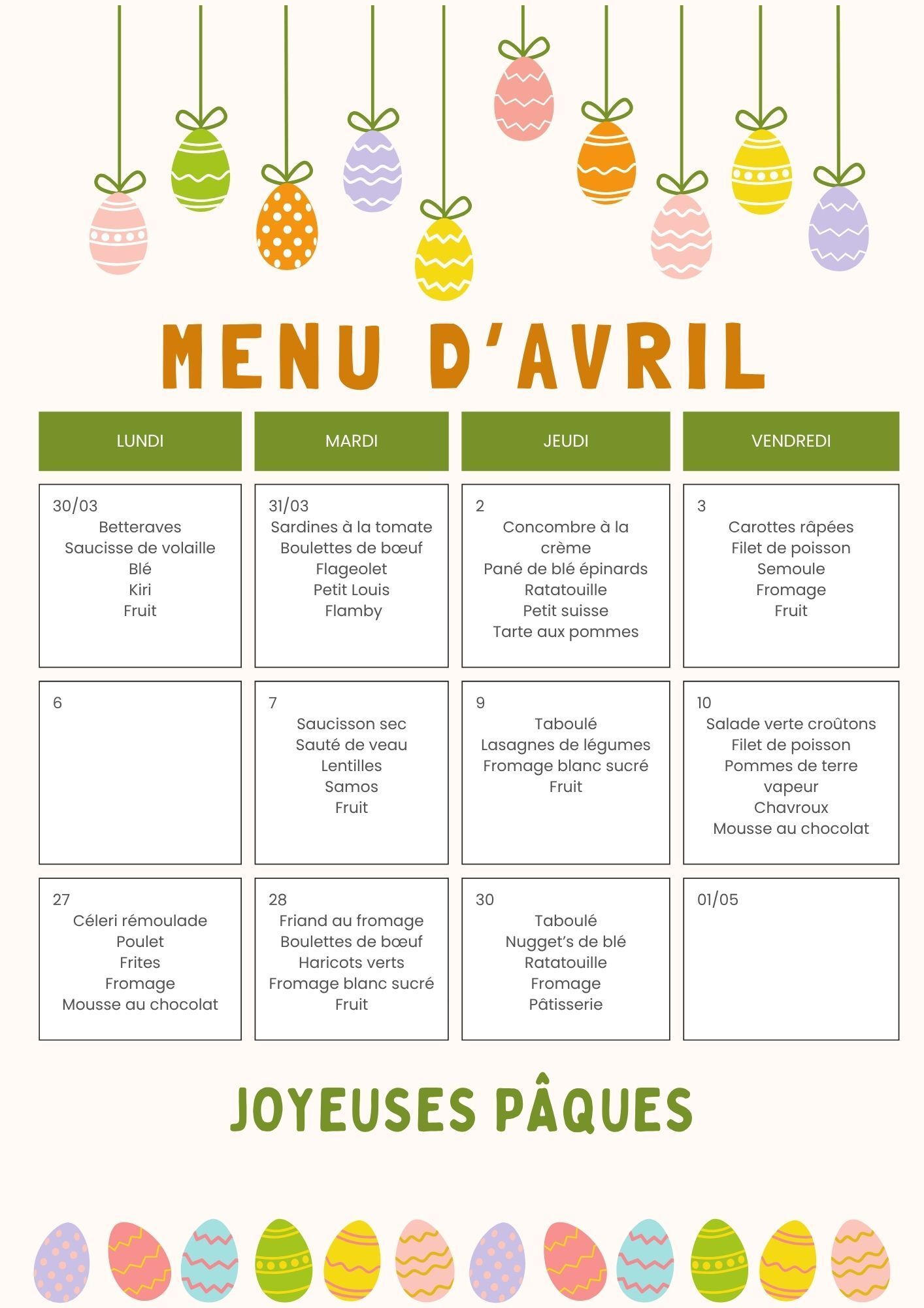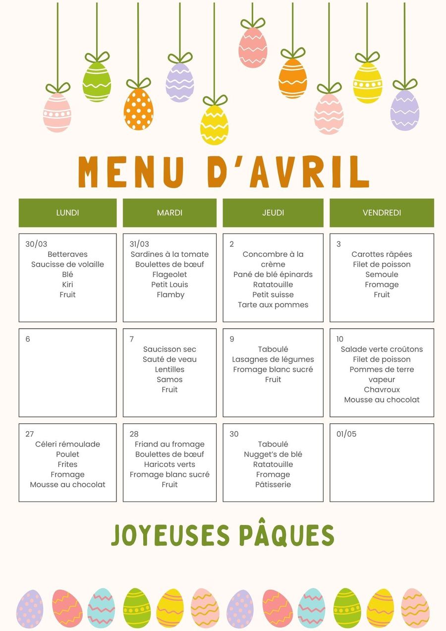 🍽 Menu cantine Avril🍽