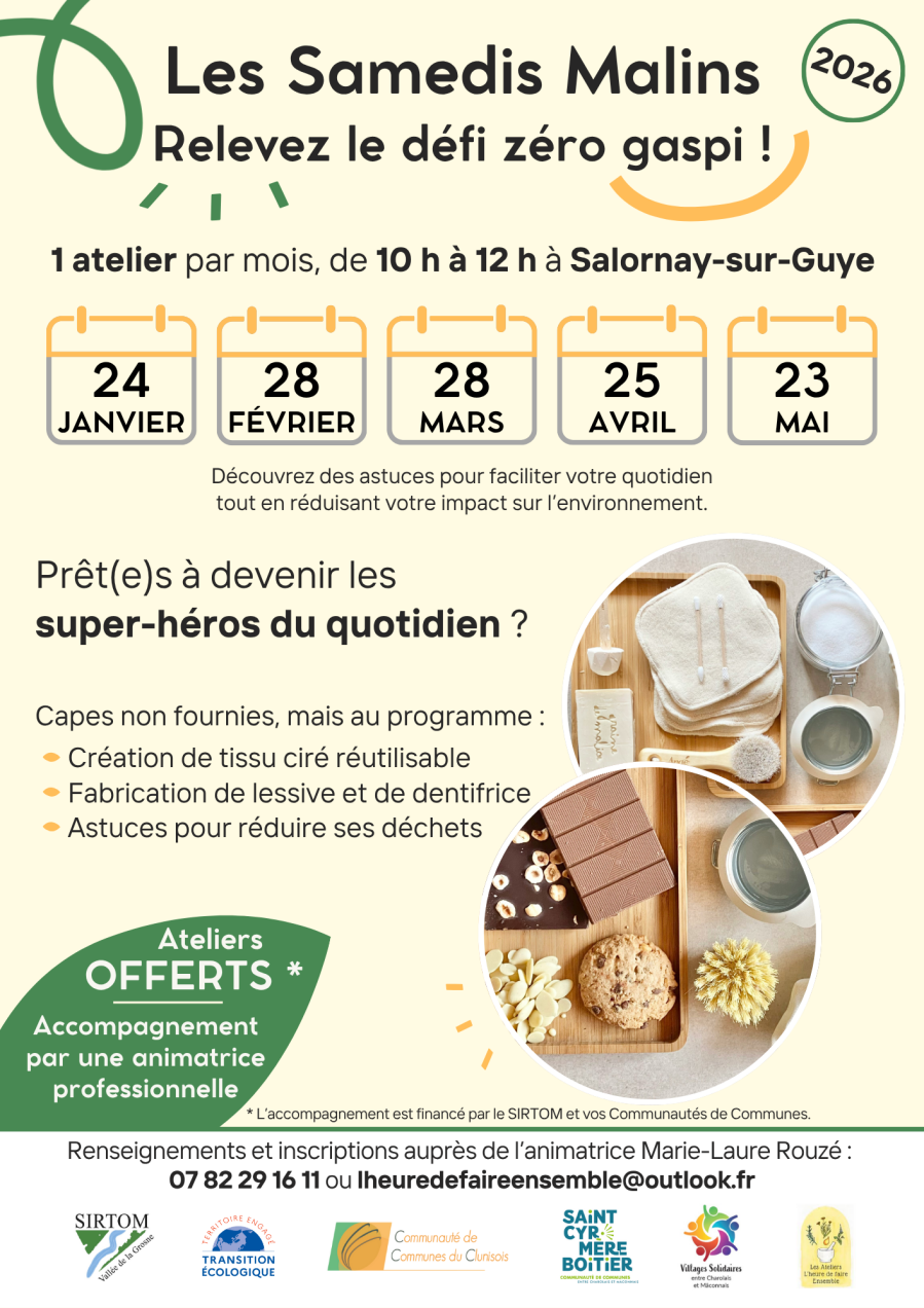 Le SIRTOM de la Vallée de la Grosne lance la 5ème édition des "Samedis malins - Relevez le défi zéro gaspi !".