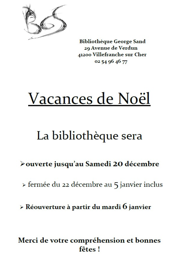 Fermeture de la Bibliothèque - Vacances de NOEL
