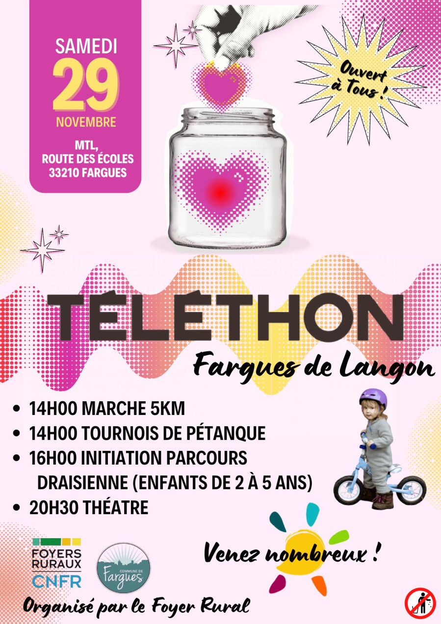 - Samedi 29 et 30 Novembre, Théâtre le samedi 29 par la « Troupe du Temps Libre », section théâtre du Foyer Rural de Fargues.