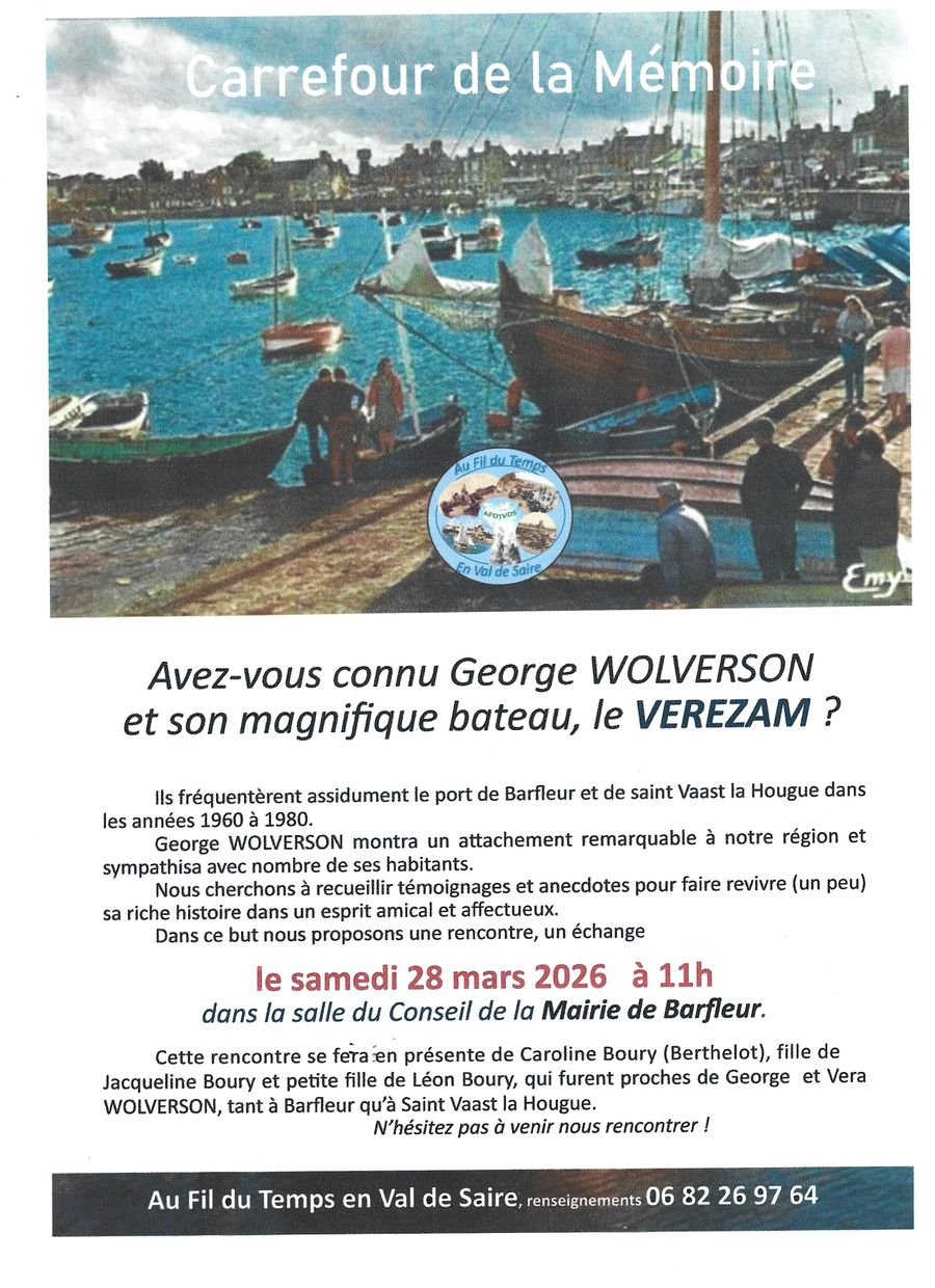 L'association "Au fil du temps en Val de Saire" est à la recherche de témoignages et d'informations relatives à l’histoire du « Verezam « , un navire remarquable qui fréquenta régulièrement les ports de Barfleur puis de Saint-Vaast-la-Hougue.